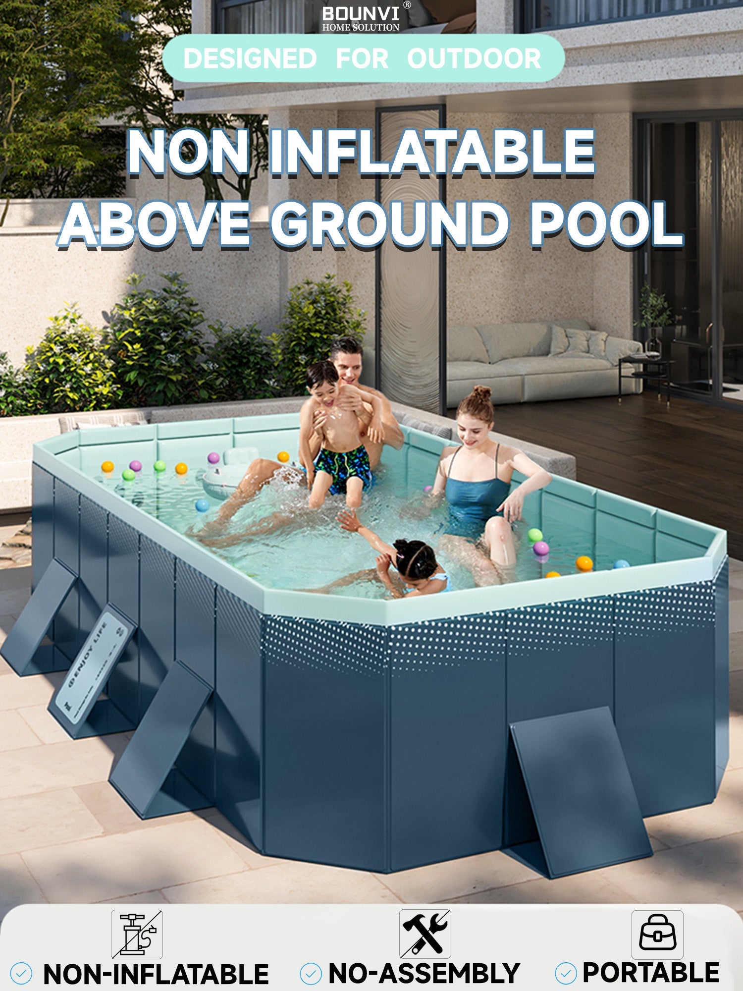 122" Non-Inflatable Foldable Swimming Pool for Family, Portable Above Ground Pool for Adults & Kids, Easy Setup for Outdoor, Backyard, Garden, Camping - Durable PVC(122"×65"×20", Std)